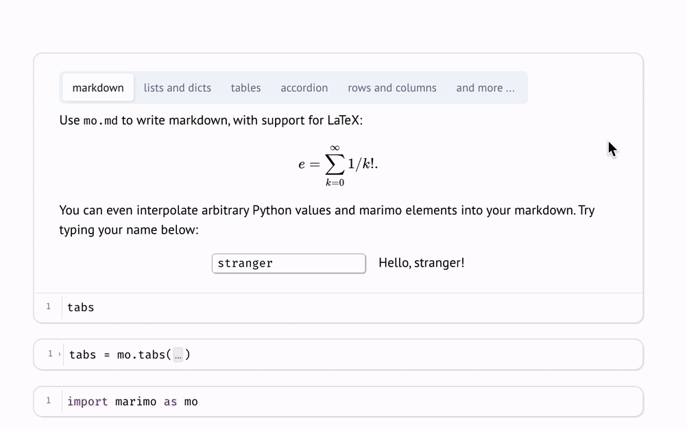 The marimo library also comes with elements for laying out outputs, including