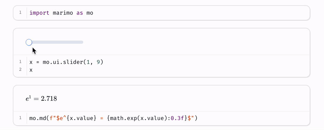 sliding a slider), marimo sends the new value back to Python and reactively