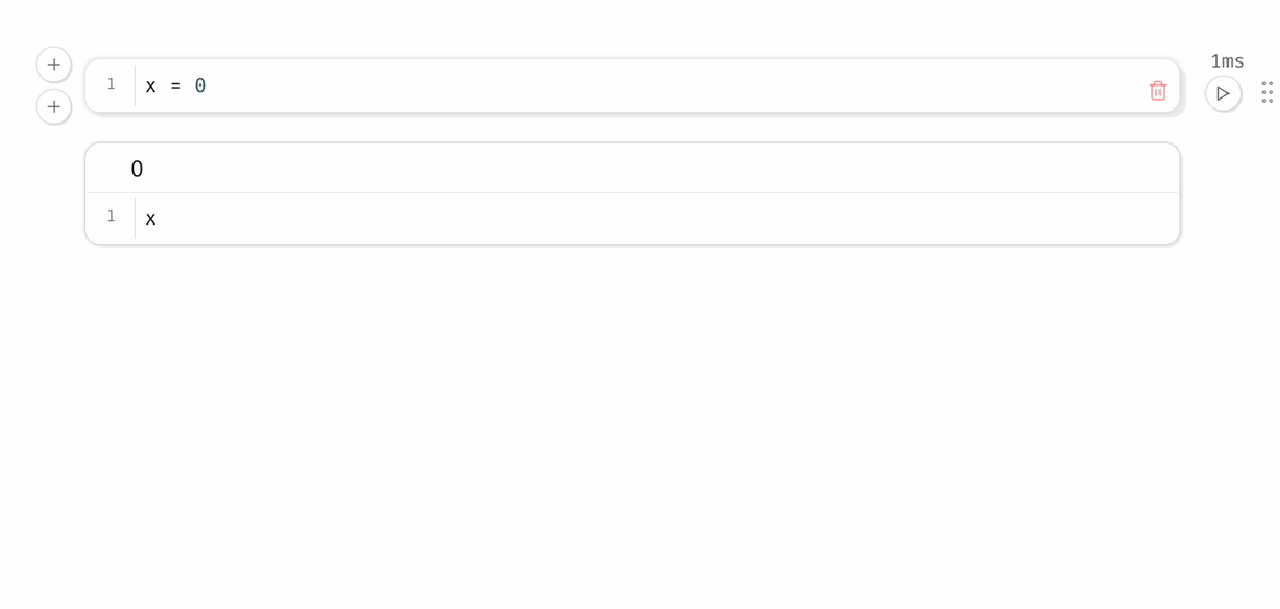 Variables prefixed with an underscore are local to a cell (.e.g., _x). You