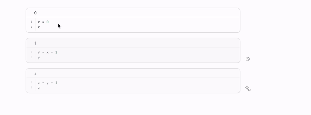 Sometimes, you may want to edit one part of a notebook without triggering automatic execution of its dependent cells. For example, the dependent cells may take a long time to execute, and you only want to iterate on the first part of a multi-cell computation.